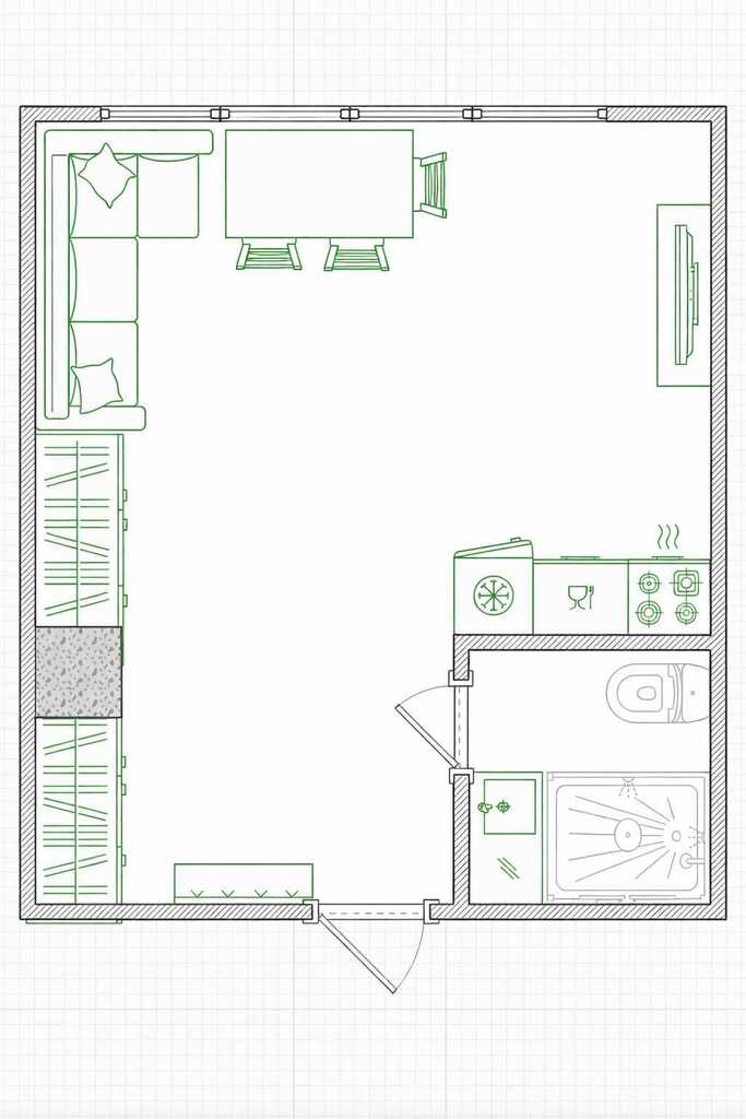 • Układ 1 pokój z aneksem – najchętniej wybierany format pod wynajem