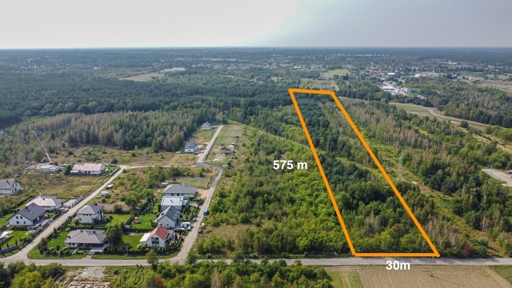 Działka o wymiarach 30 x 575 metrów umożliwia efektywne wydzielenie drogi dojazdowej oraz podział terenu na kilkanaście działek, co otwiera szerokie możliwości zagospodarowania. Kształt i wielkość działki sprzyjają tworzeniu przemyślanych, funkcjonalnych układów urbanistycznych w spokojnym i zielonym otoczeniu.