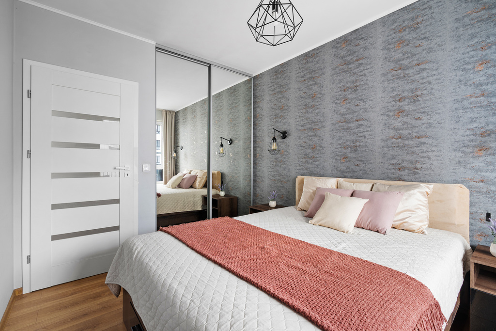 • sypialnia z zabudowaną szafą,