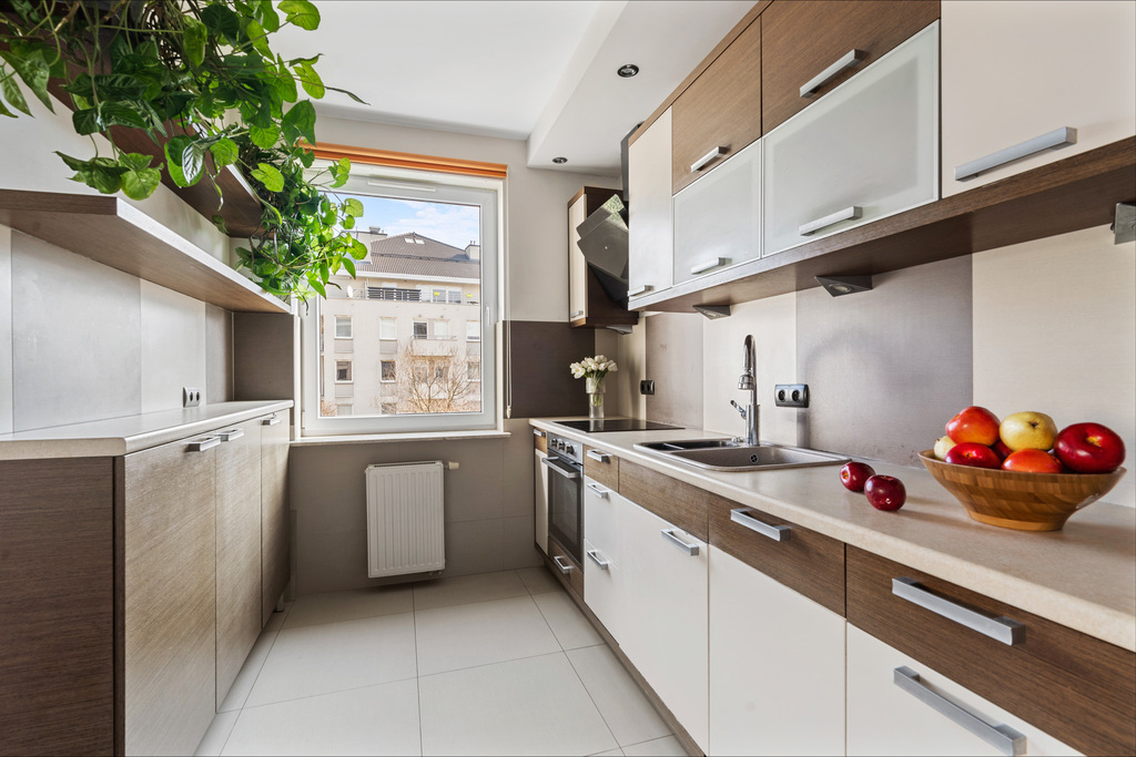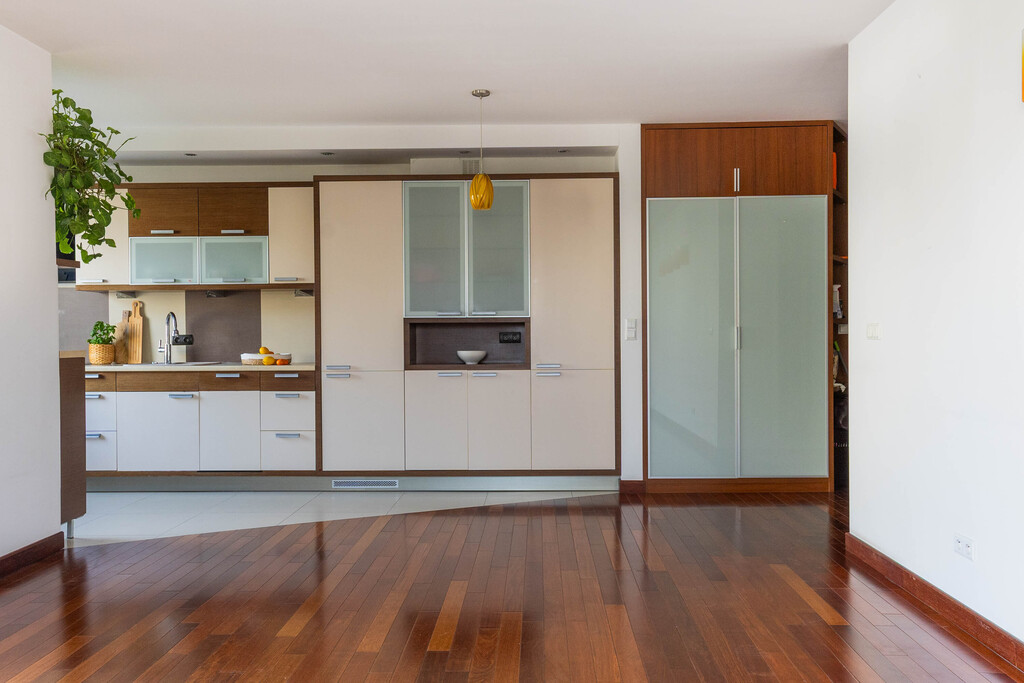 • Duży salon z aneksem kuchennym w zabudowie – naturalne centrum życia, gdzie toczy się Wasza codzienność, a wyjście na duży balkon dodatkowo otwiera tę przestrzeń.