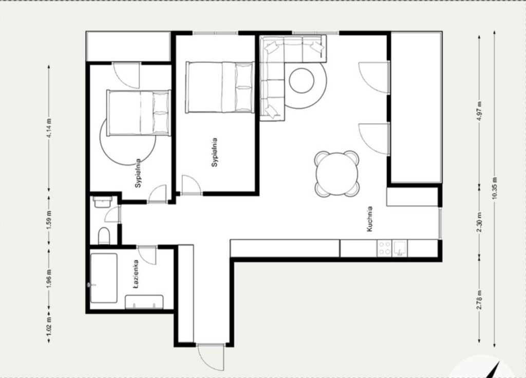 • Dwie sypialnie – idealne rozwiązanie dla pary: jedna jako główna, druga jako HOME OFFICE, garderoba lub pokój gościnny