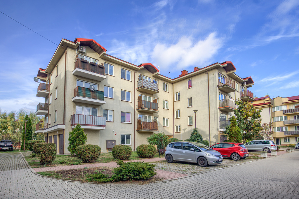 Budynek jest zadbany i w bardzo dobrym stanie technicznym, a jego otoczenie estetyczne i uporządkowane. Do mieszkania przynależy miejsce postojowe naziemne (dodatkowo płatne 20.000 zł), a wjazd na osiedle odbywa się przez szlaban na pilota, co zwiększa bezpieczeństwo i komfort mieszkańców.