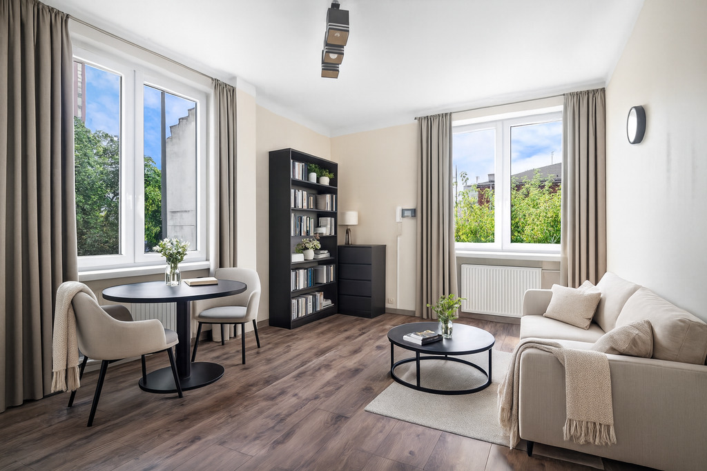 • Wysokie pomieszczenia 2.75m – poczucie przestrzeni i więcej światła w kamienicznym klimacie.
