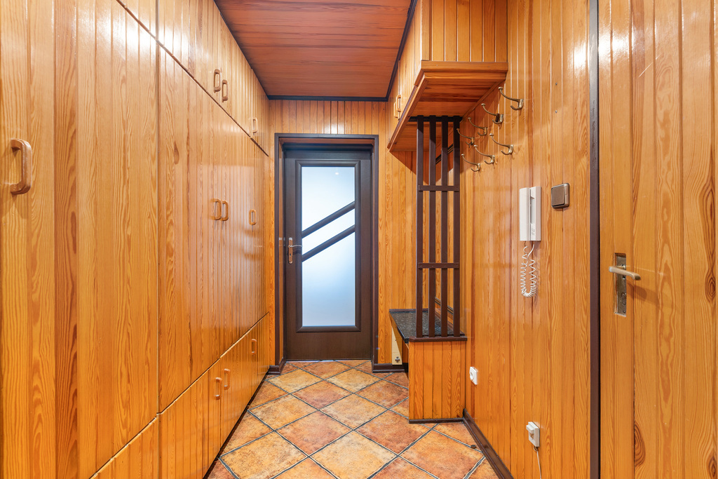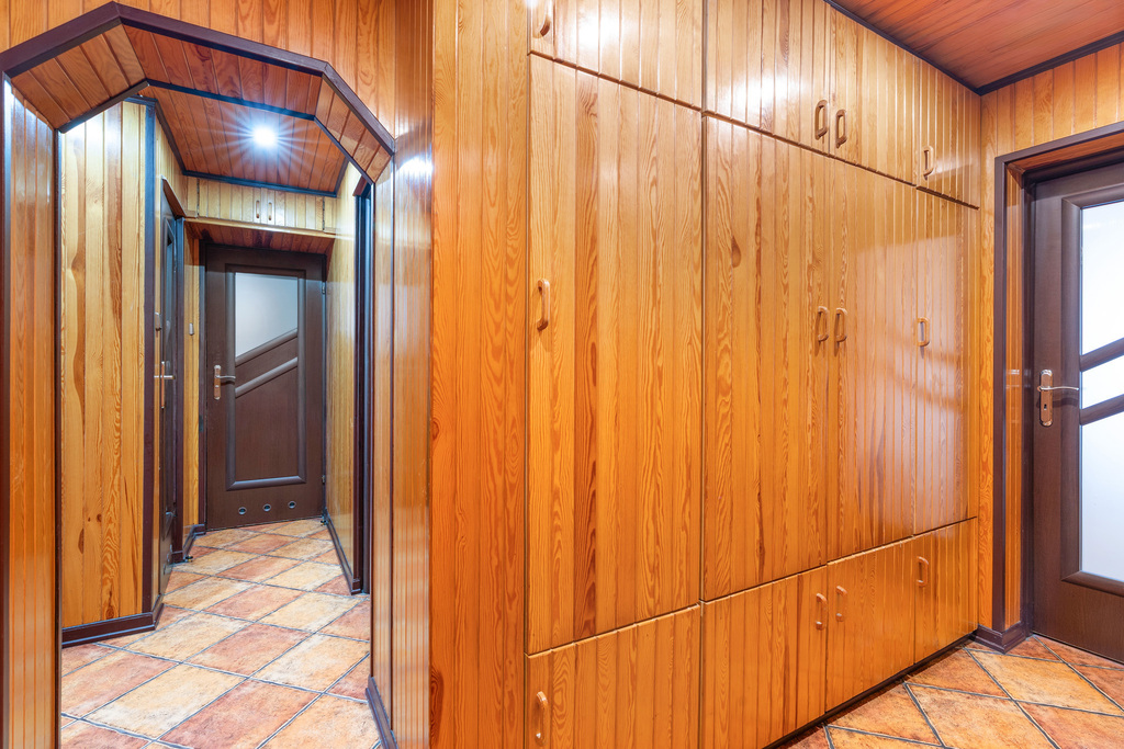 - Duży przedpokój z zabudowanymi szafami na całej długości