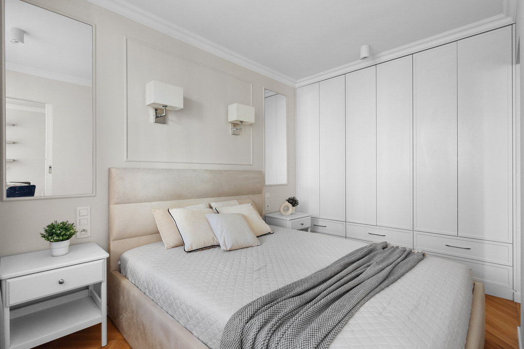 - Sypialnia – komfortowa, z pojemnymi szafami i przytulną atmosferą