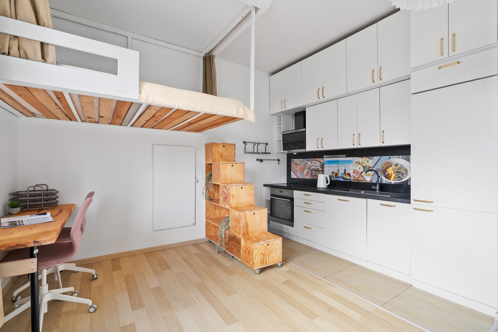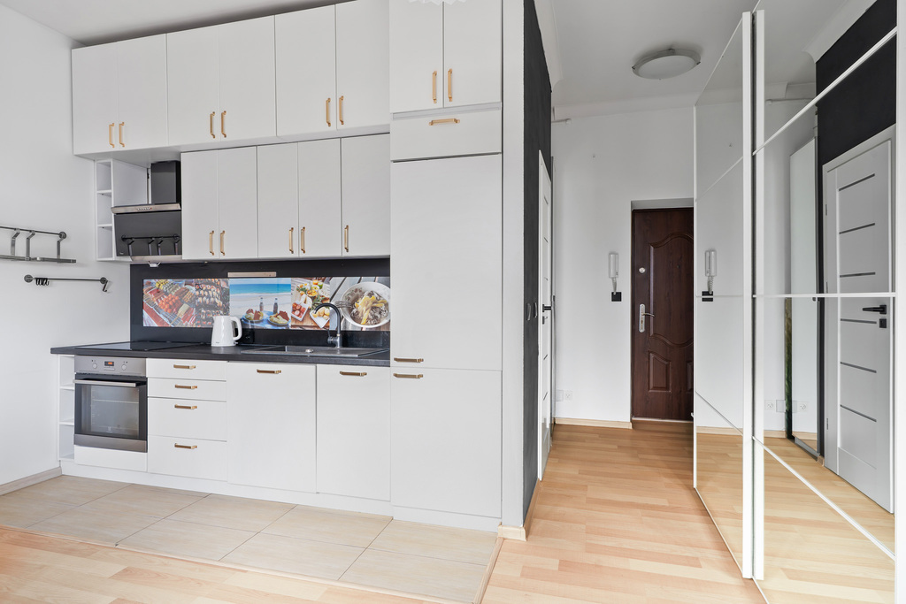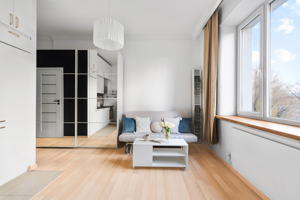 Jeśli szukasz miejsca, w którym naprawdę można odetchnąć — takiego, które otula spokojem i daje poczucie, że jesteś u siebie — ta kameralna kawalerka będzie idealna. Wysokie sufity, ciepłe światło, przytulna antresola tworzą wnętrze, do którego chce się wracać. To małe, miejskie gniazdko zaprojektowane tak, by dawać komfort i codzienny spokój.