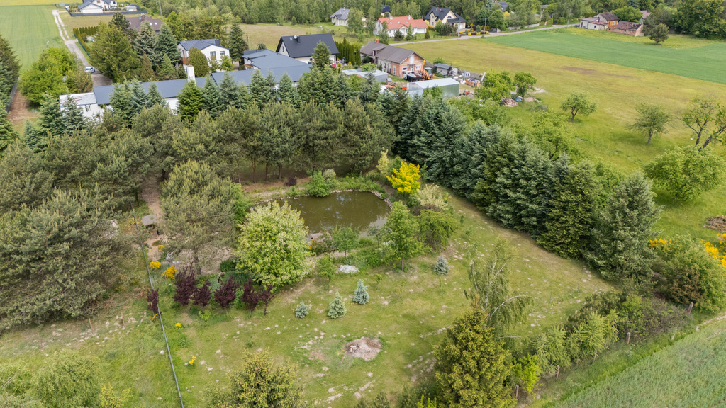 Ponad 7000 m² przestrzeni z duszą. Starodrzew, kwitnące krzewy, prywatny staw i przyjazna infrastruktura – gotowe, by rozpocząć nowy projekt.