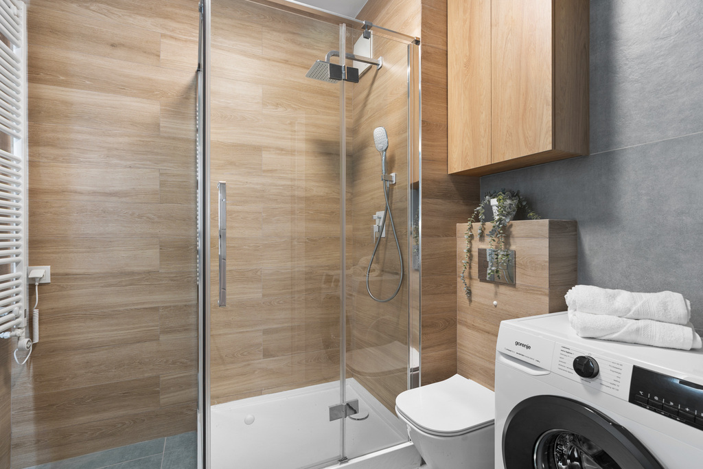 - Łazienka z prysznicem – z możliwością regulacji klimatu światła