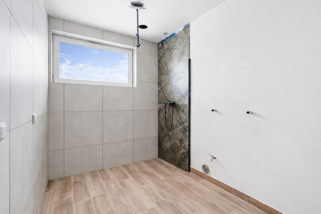 Nieruchomość w stanie deweloperskim z częściowym wykończeniem: zamontowane drzwi wewnętrzne, przygotowane ściany, gres i panele w części pomieszczeń, dodatkowe zabezpieczenia i instalacje. Ogrzewanie podłogowe zostało wykonane w kuchni, dwóch łazienkach oraz w holu na parterze i piętrze. Zamontowany jest również piec gazowy z zasobnikiem wody 100l.