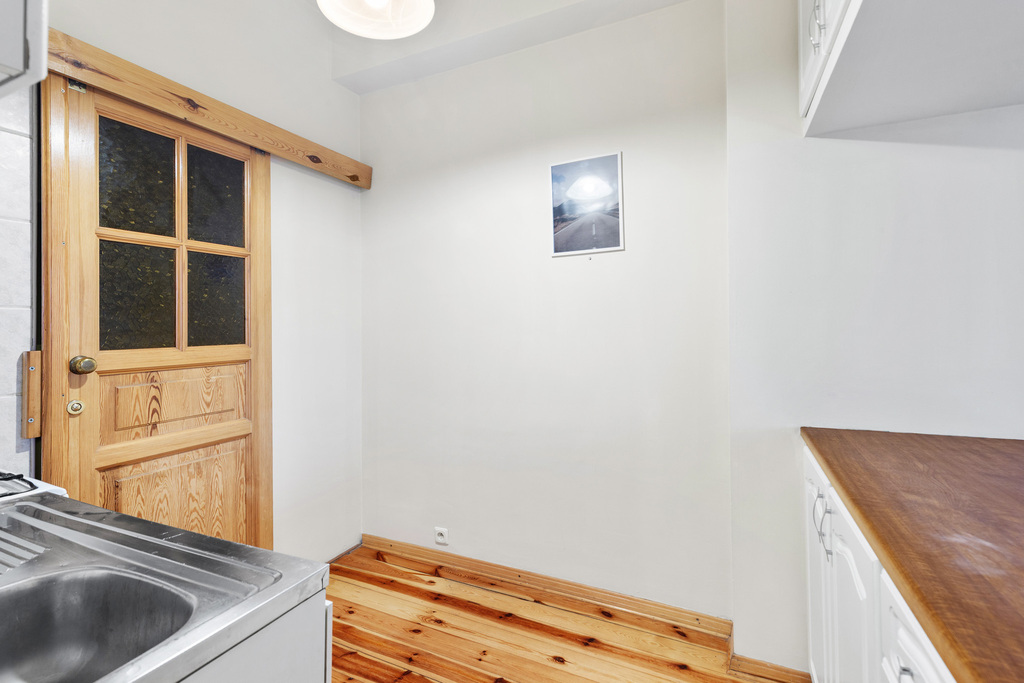 - Oryginalna dębowa klepka: Zachowana w doskonałym stanie, po renowacji nada wnętrzu szlachetnego charakteru.