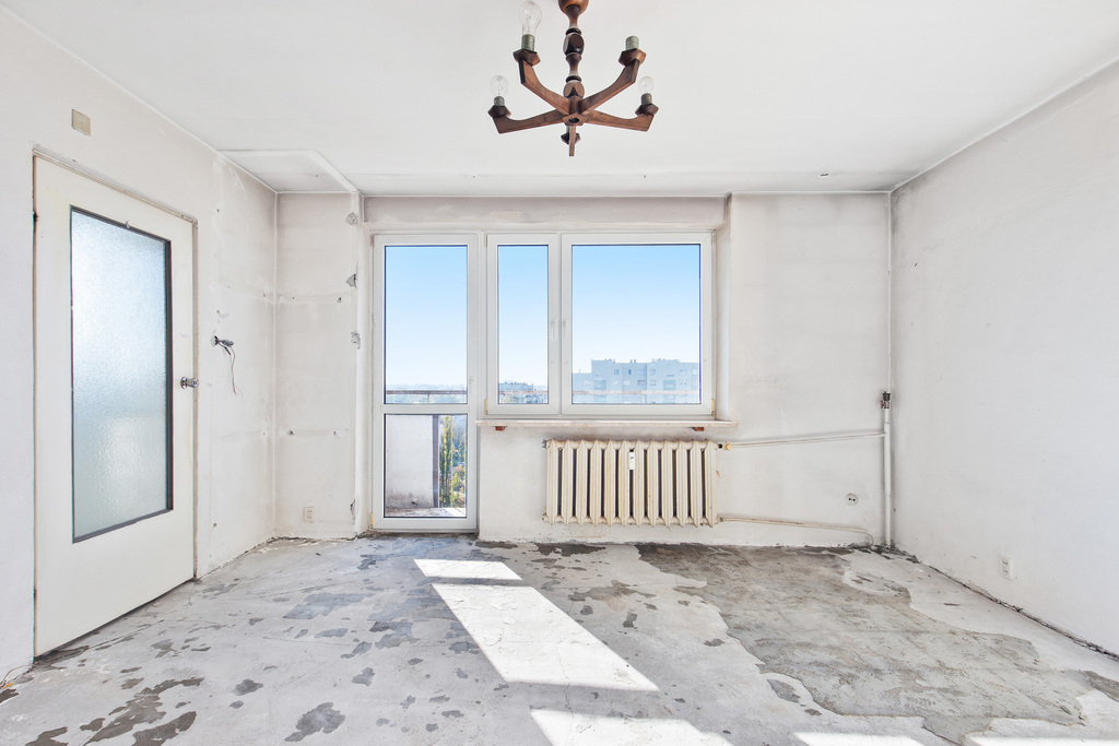 - Pełna dowolność aranżacji – mieszkanie przygotowane do generalnego remontu, idealne dla osób, które chcą urządzić wnętrze po swojemu