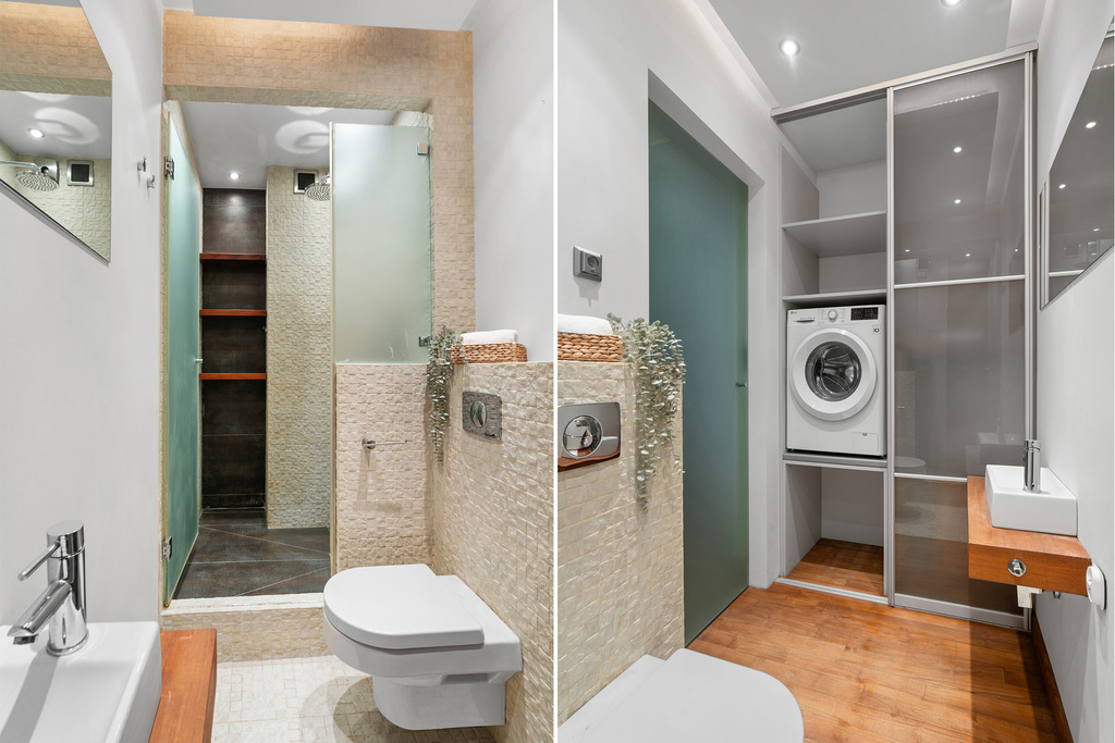 ● Łazienka z prysznicem i zabudowaną pralką