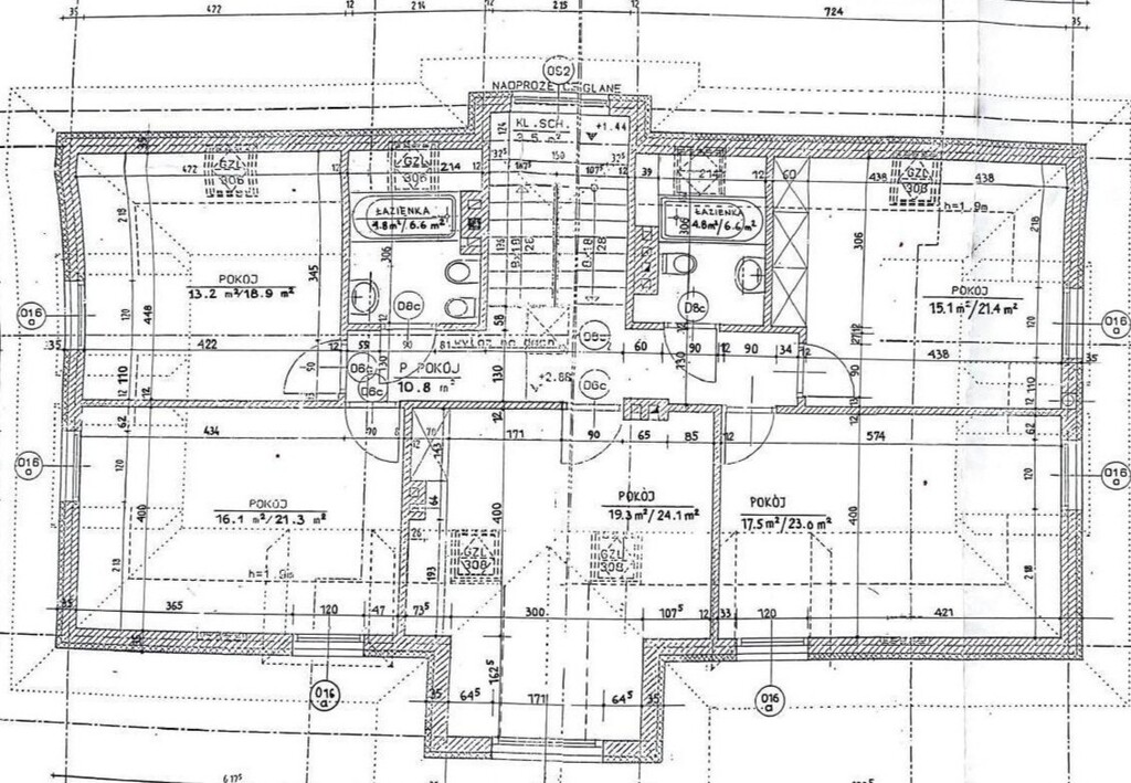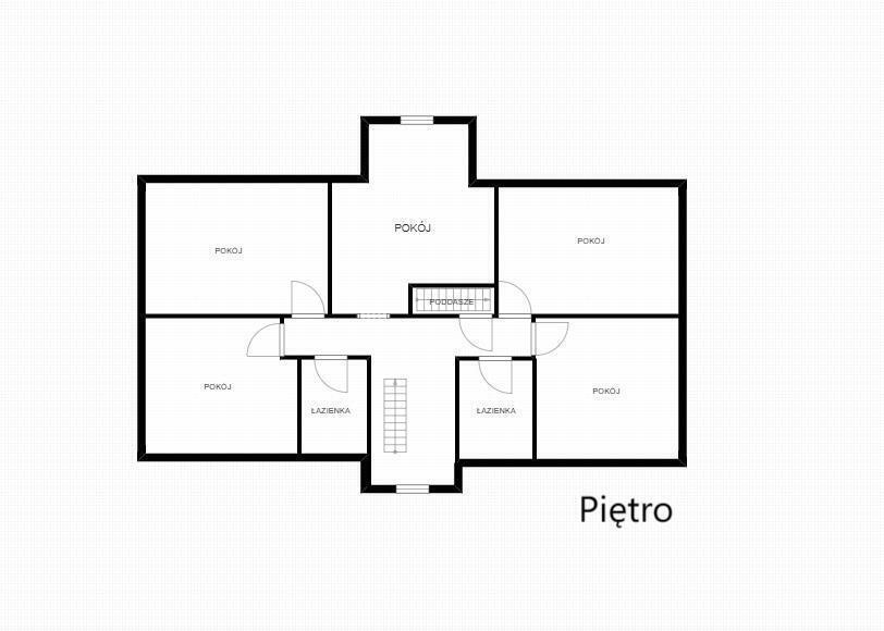 Piętro: 5 sypialni, 2 łazienki, wejście na przestronne poddasze z oknami dachowymi.
