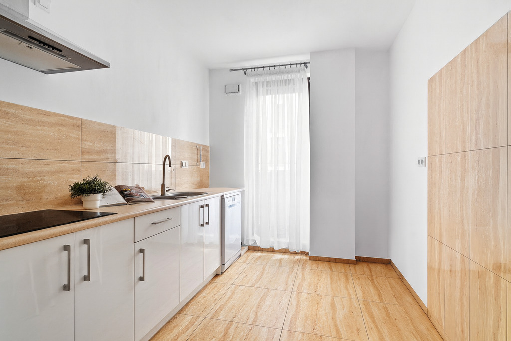 - Osobna kuchnia z balkonem francuskim – wymarzone miejsce na kawę o świcie i gotowanie z rozmachem.
