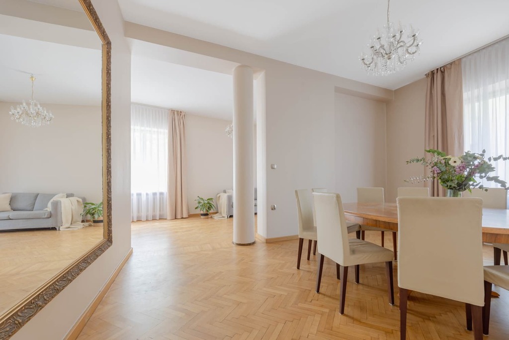 To mieszkanie łączy w sobie to, co w Warszawie najcenniejsze – świetną lokalizację, spokój i niskie koszty utrzymania.