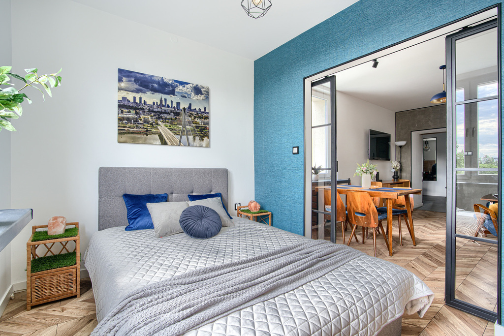 -> Oddzielona sypialnia dwuskrzydłowymi drzwiami- miejsce odpoczynek i wyciszenie