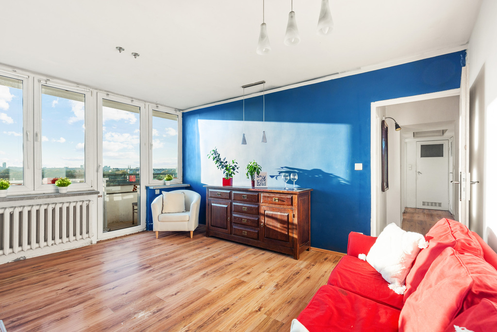 Wyobraź sobie poranki, gdy słońce wlewa się do mieszkania złotym światłem, a przed Tobą rozciąga się panorama Warszawy – od Stadionu Narodowego po daleki horyzont.