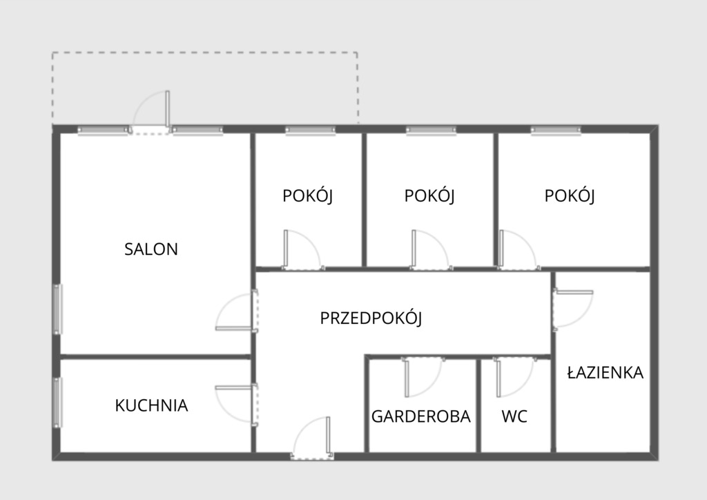- cztery pokoje (salon + trzy sypialnie),