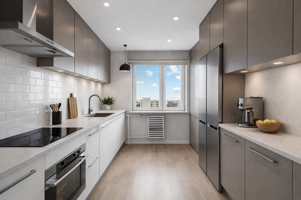 • Osobna kuchnia z oknem – możliwość otwarcia na salon lub stworzenia klasycznego układu