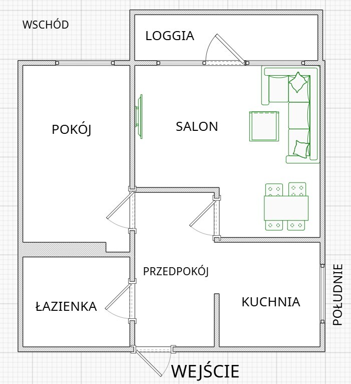 - Funkcjonalny rozkład – dwa ustawne pokoje i oddzielna kuchnia ,