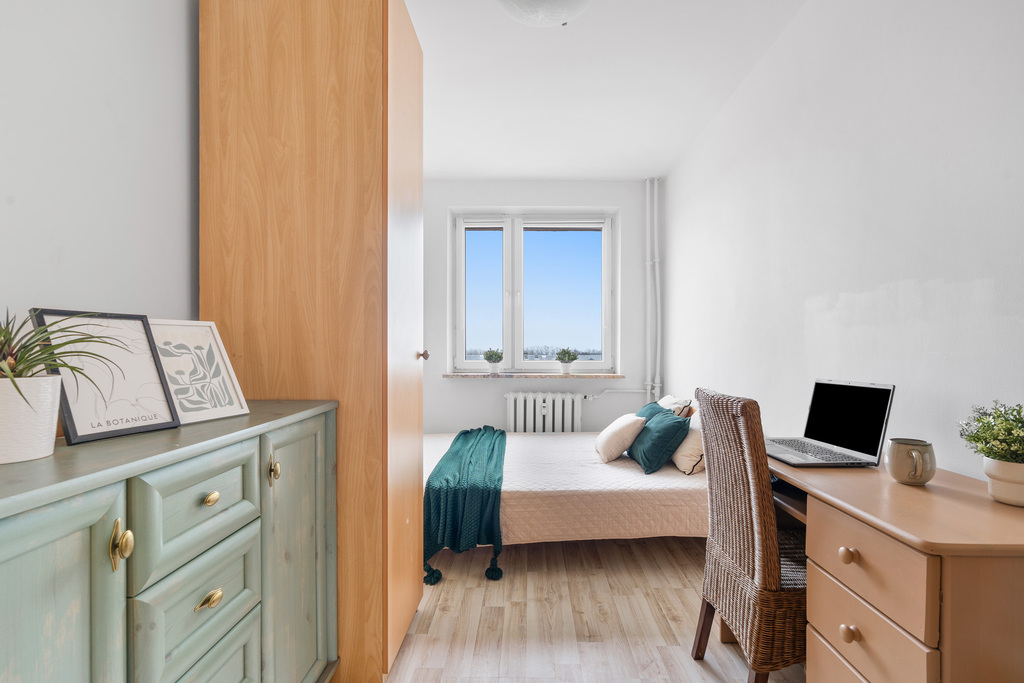 Poranna kawa z panoramą Warszawy, cisza zielonego Natolina, metro kilka minut spacerem.