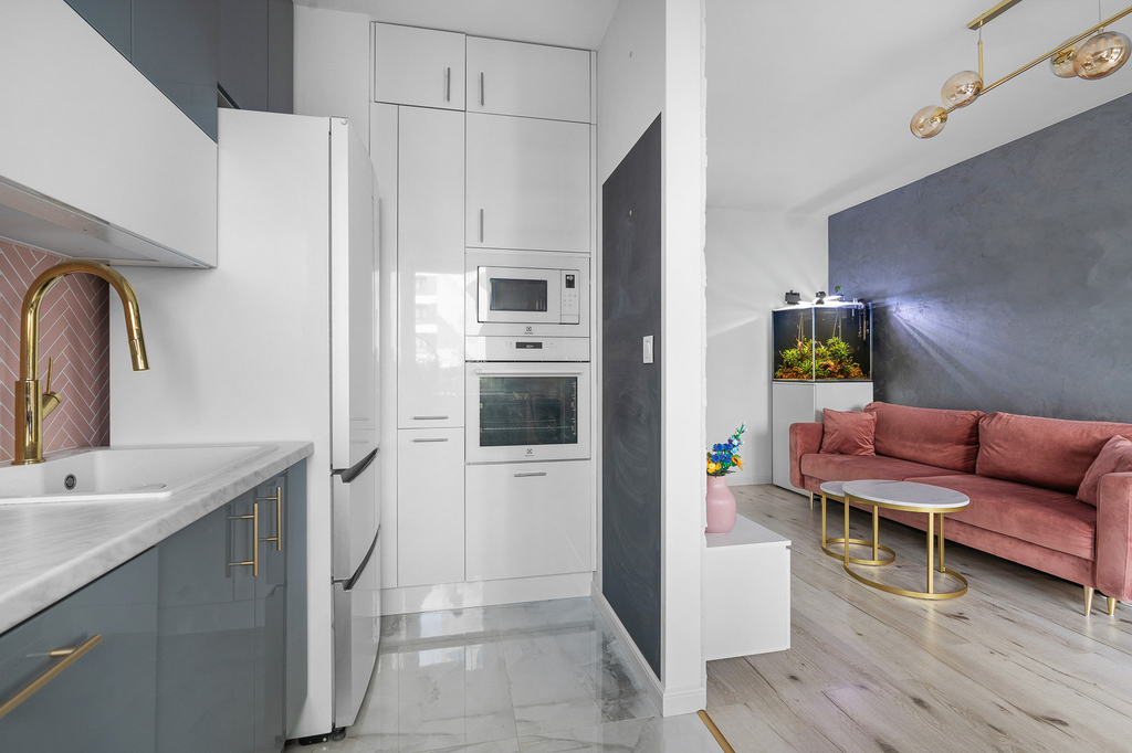 - Salon z aneksem kuchennym – jakościowe wykończenie od A do Z – bez potrzeby dodatkowych nakładów finansowych.
