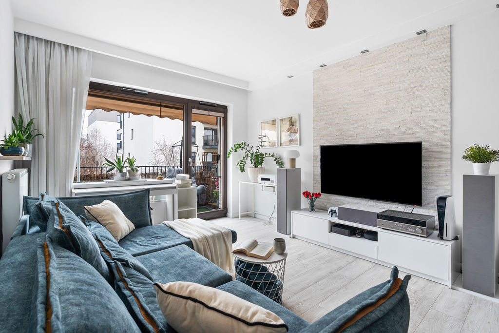 Wyobraź sobie 25-metrowy salon z wschodnią ekspozycją, w którym poranne słońce subtelnie oświetla każdy detal wnętrza. Przestrzeń ta płynnie łączy się z 7-metrowym balkonem – idealnym miejscem na poranną kawę lub wieczorny relaks z widokiem na ciche, zielone patio osiedla.