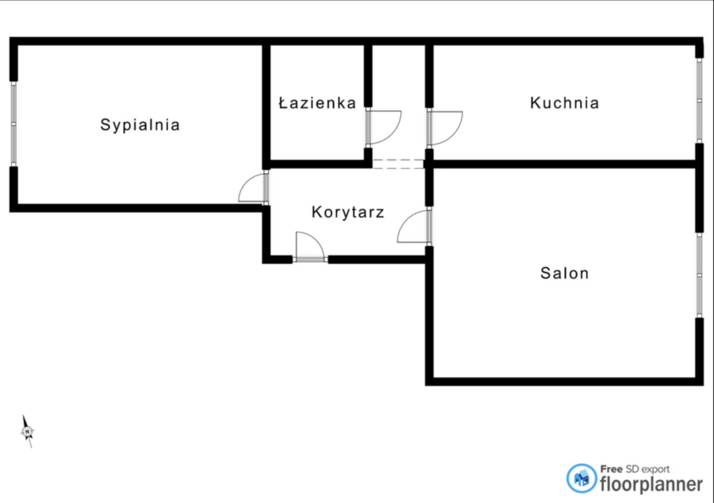 - Po lewej stronie od wejścia sypialnia oddzielona korytarzem od strefy dziennej