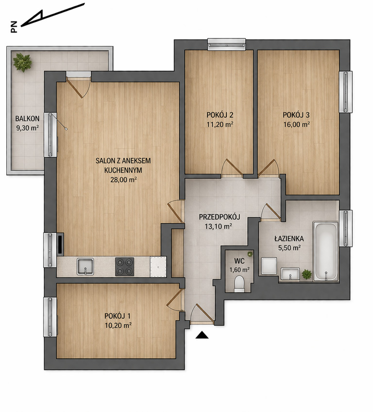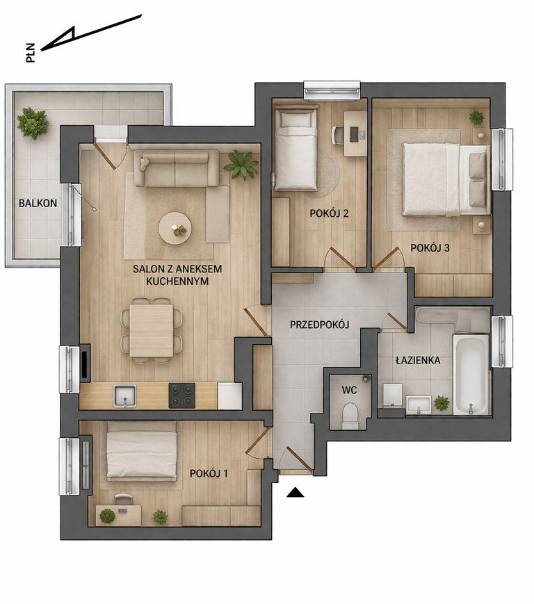 - Narożne mieszkanie z narożnym balkonem – wnętrze pełne naturalnego światła
