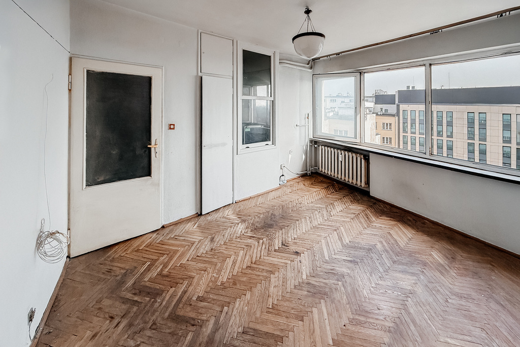 Mieszkanie wymaga generalnego remontu, co daje możliwość pełnej optymalizacji układu i wykończenia pod konkretnego najemcę lub standard premium pod najem krótkoterminowy.